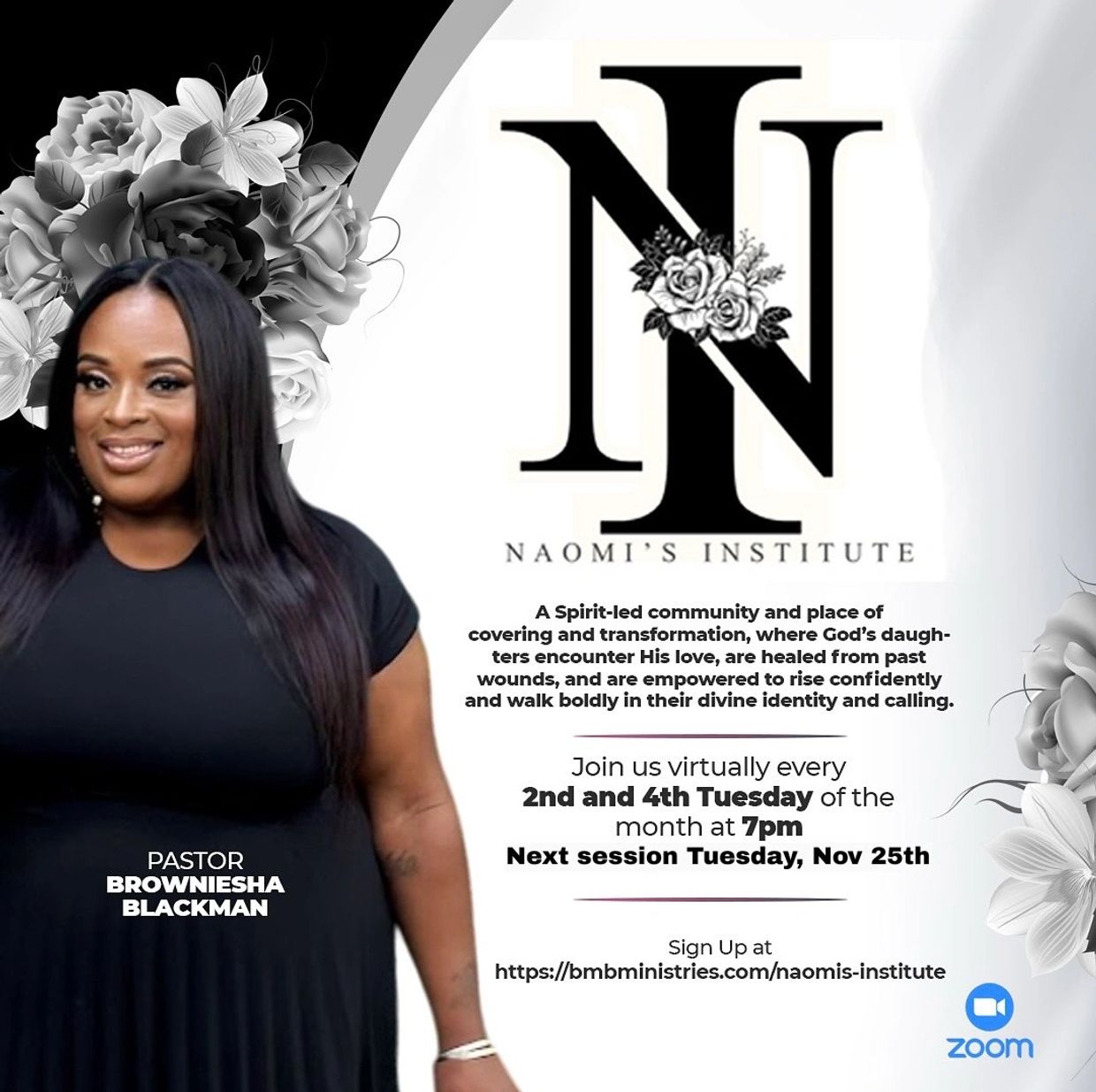 Naomi's Institute is a faith-based program dedicated to guiding women on a transformative journey toward building a deep, personal relationship with Jesus Christ. Through spiritual covering, mentorship, and personalized counseling, we empower women to experience healing and deliverance, embracing the freedom and purpose found in Christ. At Naomi's Institute, we walk alongside you, offering wisdom, support, and the tools needed to grow spiritually and live a life of wholeness in Christ.
